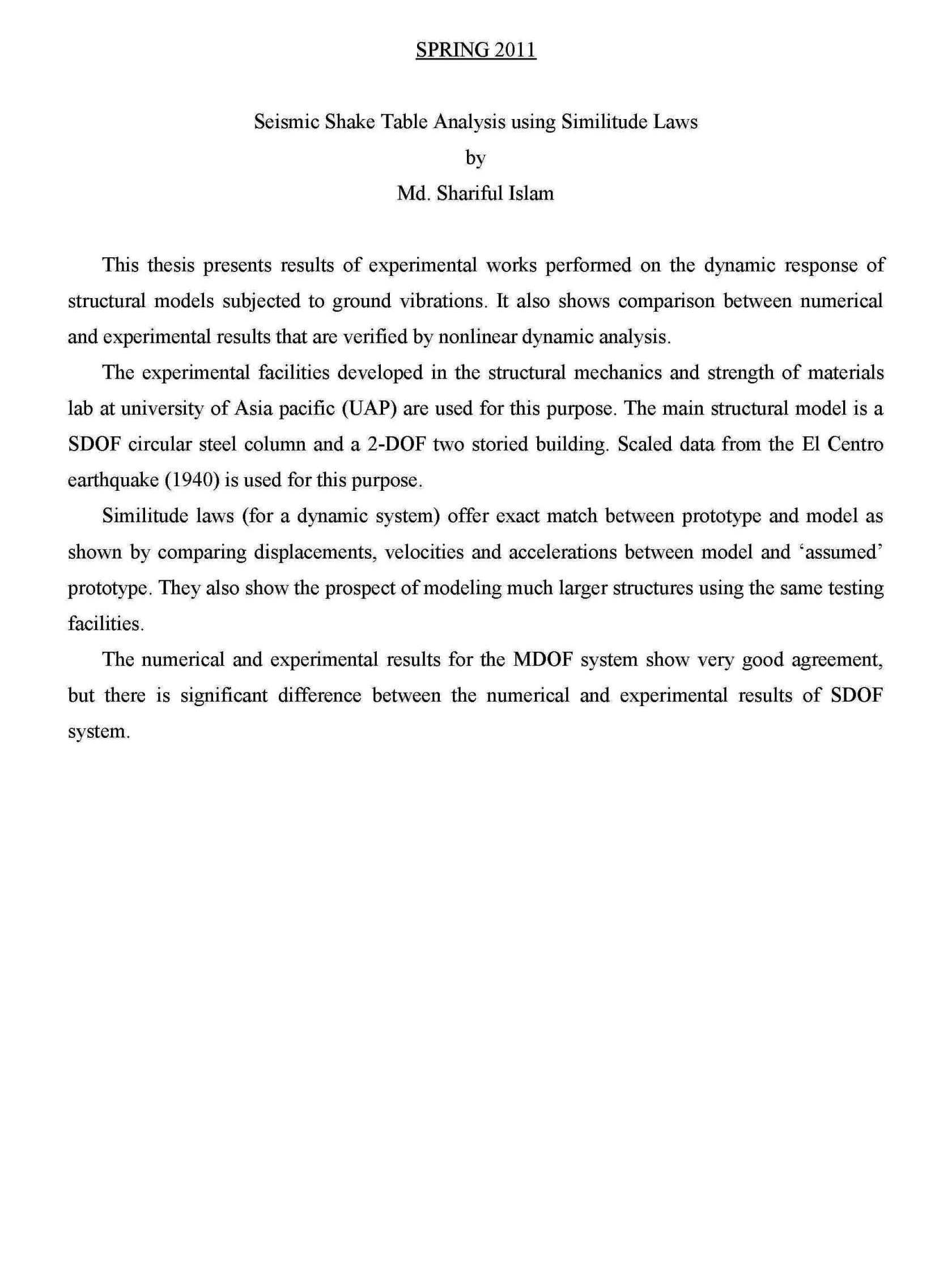Shake Table Analysis of Concrete Structural Models |