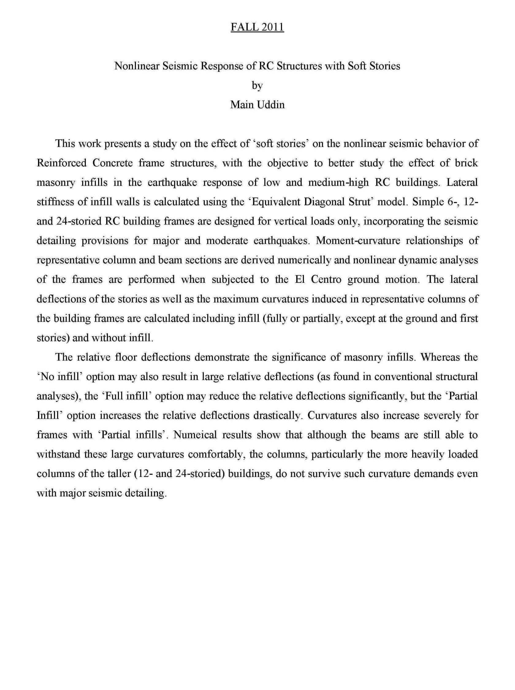 Response of RC Structures with Soft Stories |