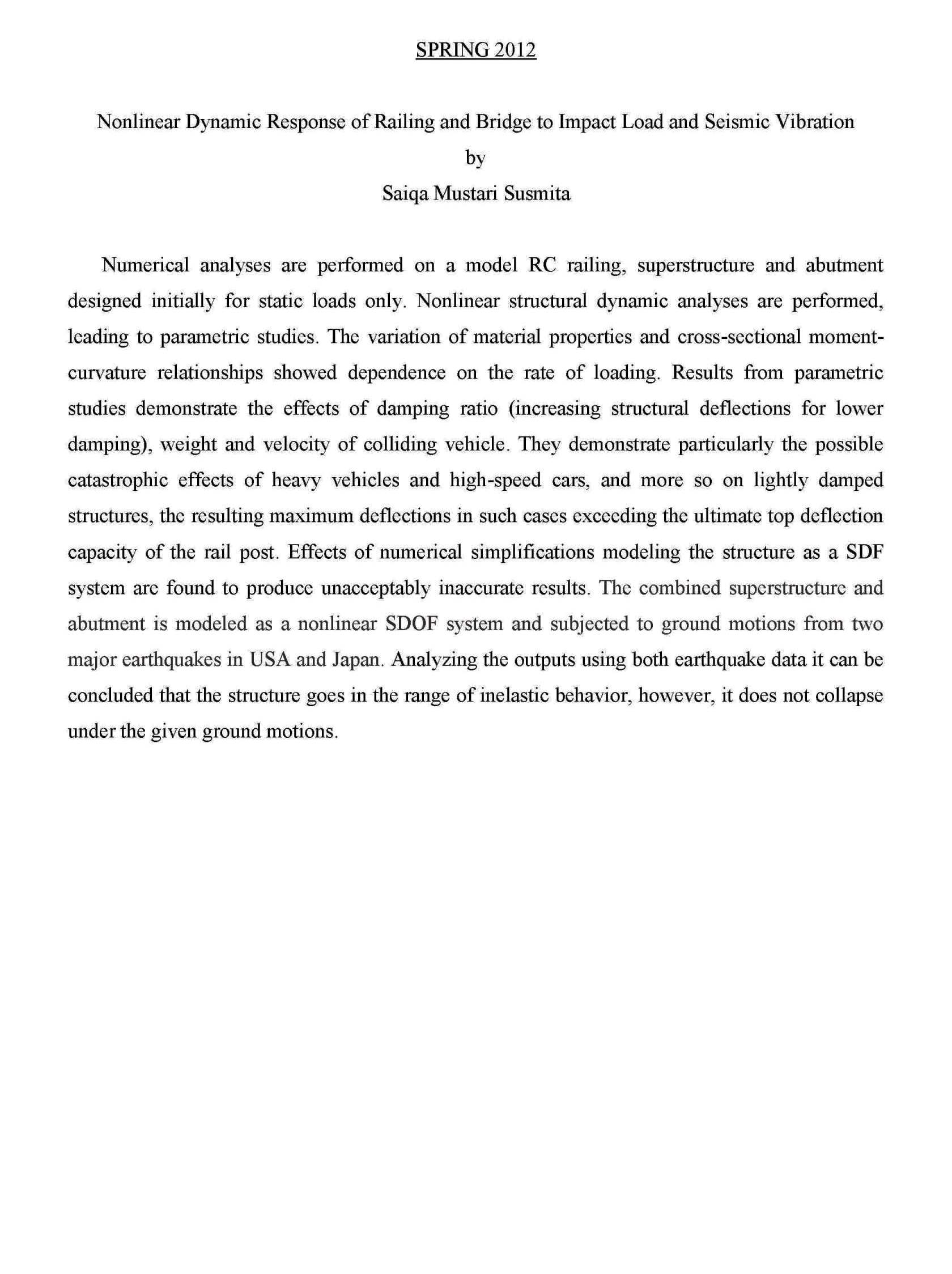 Nonlinear Seismic Response of RC Structures with