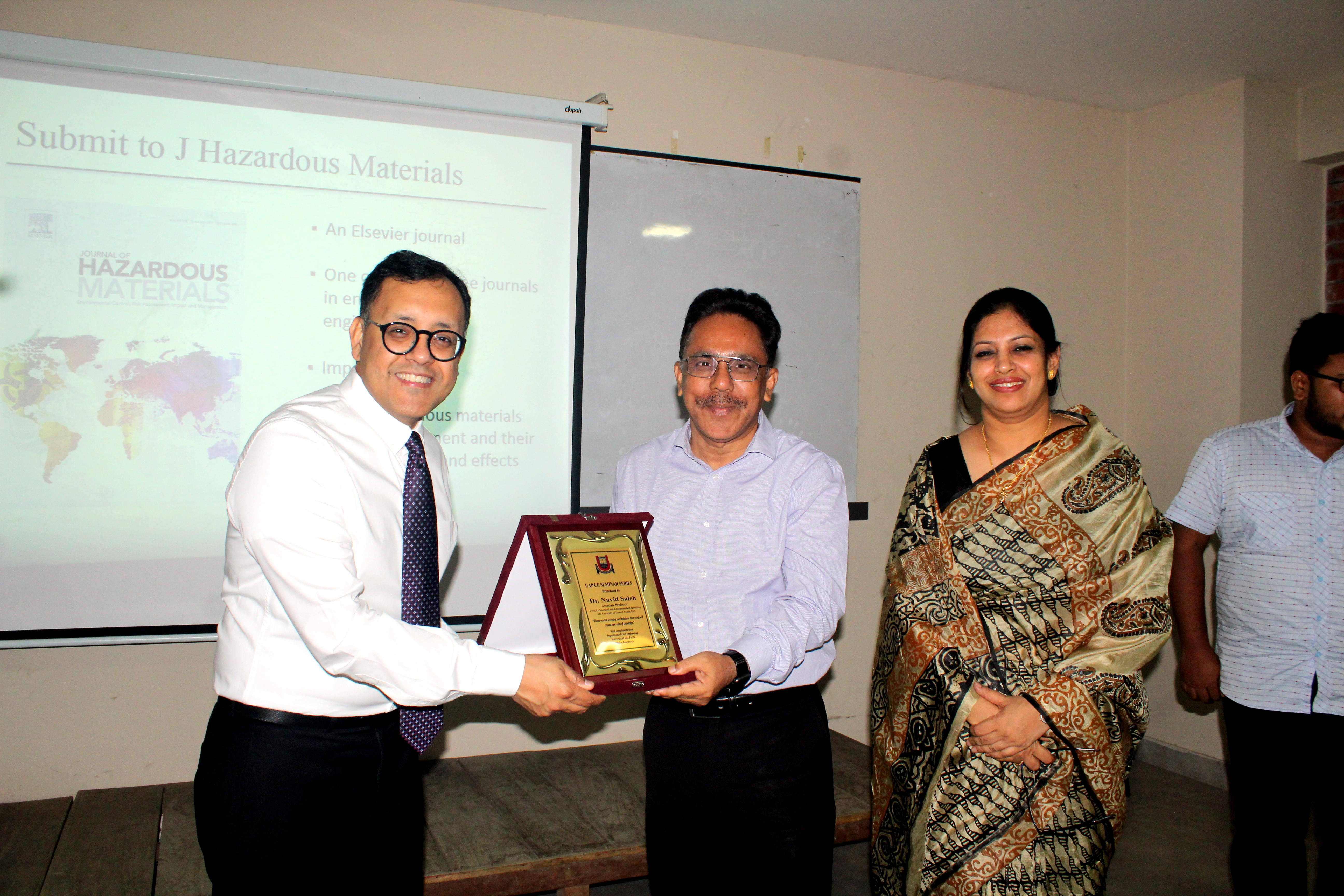 On Tuesday (11 June 2019), a seminar on "SYSTEMATIC WATER QUALITY ASSESSMENT AND AN APPROPRIATE NANO-ENABLED TREATMENT SOLUTION FOR LOW-INCOME U.S. COMMUNITIES" was held at Room no: 614 of the Department of Civil Engineering of University of Asia Pacific. Dr. Navid Saleh, Associate Professor, Civil, Architectural and Environmental Engineering, The University of Texas at Austin, USA, was the guest speaker.
